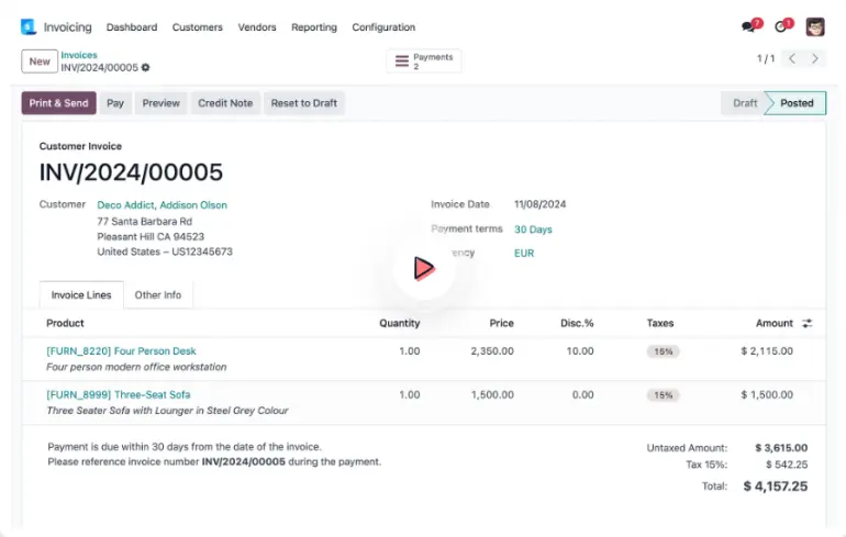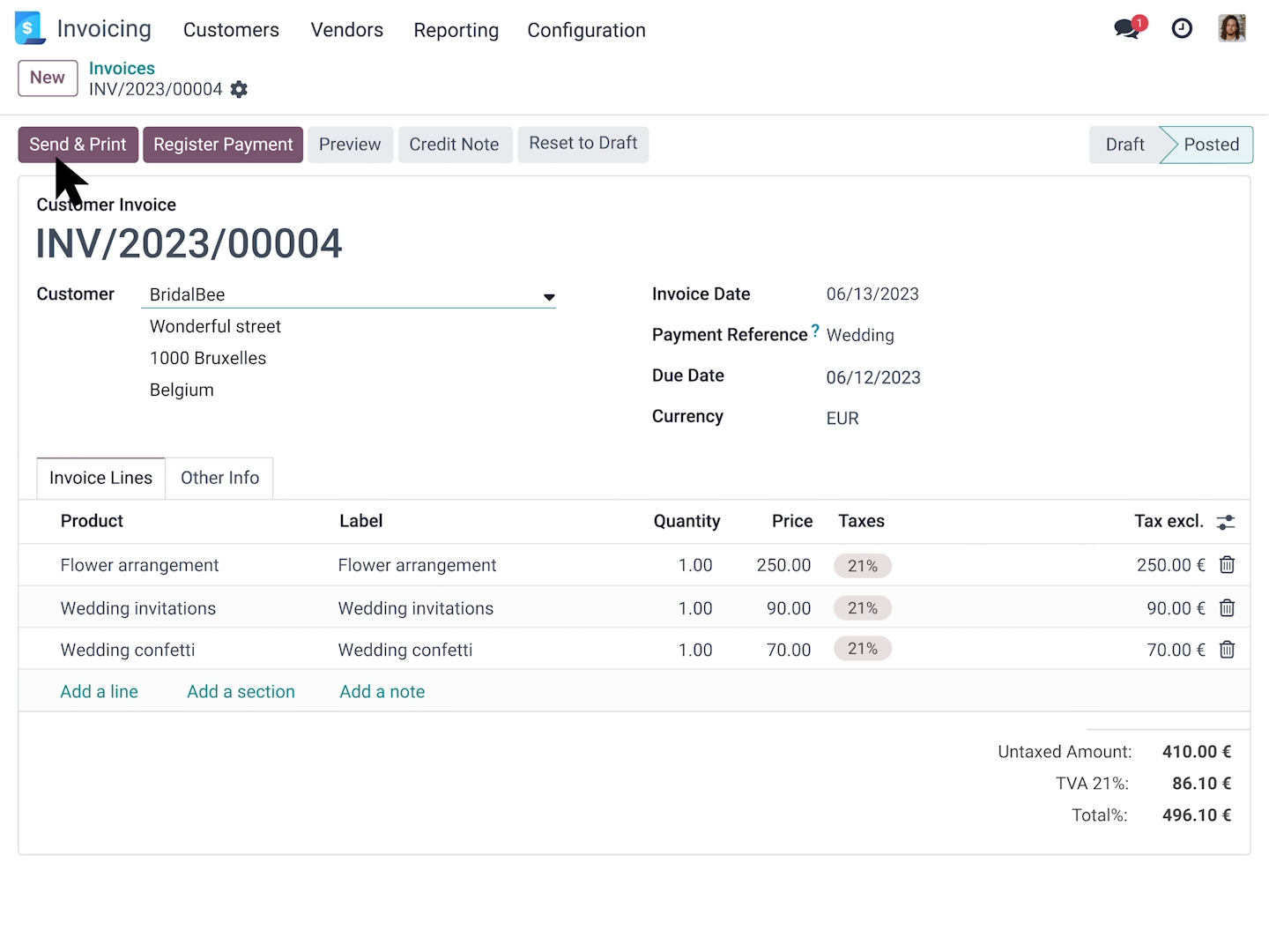 All the essential elements of an invoice are prepped just for you: customer details, products and prices, tax rates, etc. Your invoice is - literally - one click away.