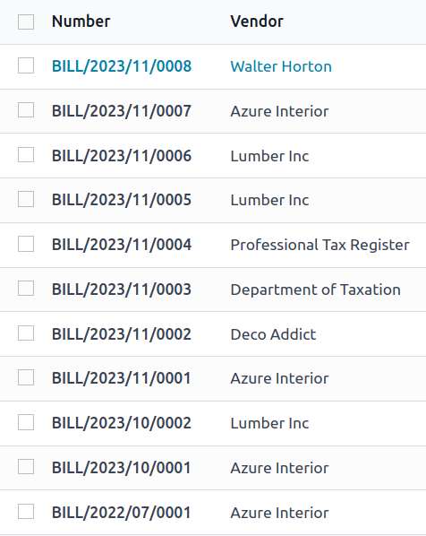 Create singular or split vendor bills at any time, and pay based on ordered or received quantities — you choose. Integrate with the Accounting app to track the payment status of bills.