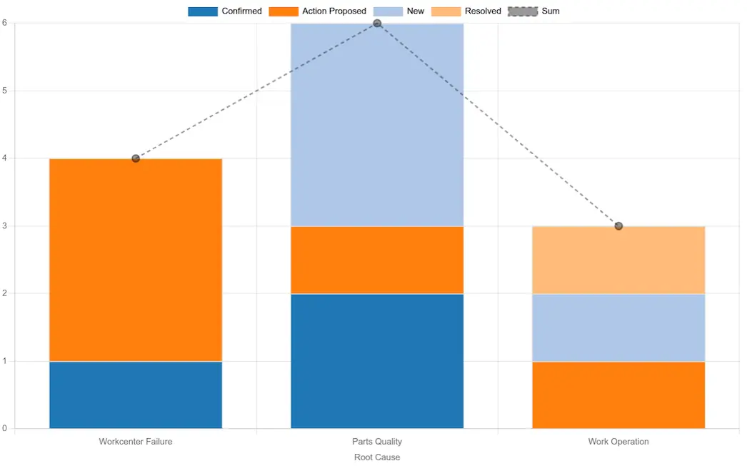 View detailed statistics about quality checks and alerts to better understand when inspections are taking place and the types of defects that are most common.
