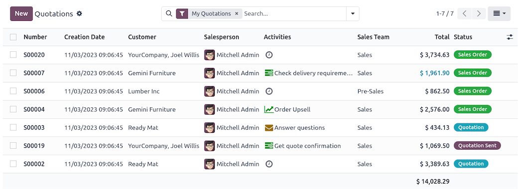 Send emails and schedule meetings with customers directly from Odoo. All communications are automatically recorded and easily found in the same logical place.